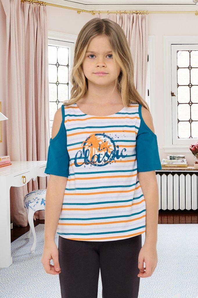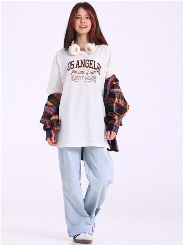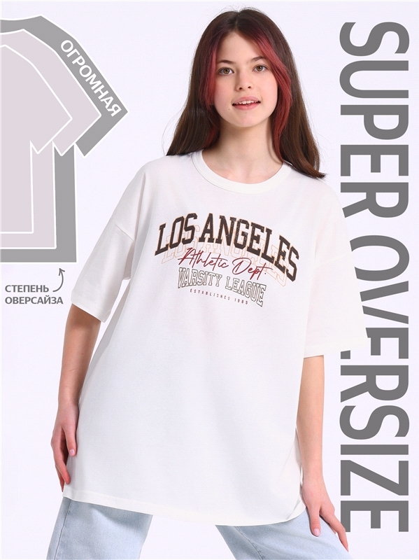 Оверсайз футболка для девочки выполнена из кулира – легкого хлопкового полотна. Изделие прямого покроя, с короткими рукавами, со спущенной линией плеча, Круглый вырез горловины обработан эластичной бе... Показать описаниейкой из полотна компаньона, украшено печатью. Уход: только машинная стирка (руками не стирать!) при температуре 40 градусов, без предварительного замачивания. Изделия с печатью и декором перед стиркой необходимо вывернуть на изнаночную сторону. Состав: кулир / хлопок 100%.