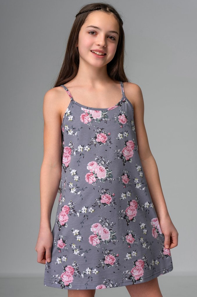 Летний сарафан на бретелях для девочки. Изготовлен из высококачественного трикотажного полотна. Изделие сохраняет цвет и форму после многократных стирок.