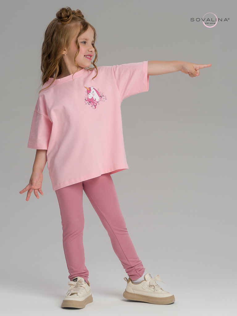 Состав: верх: 96%хлопок 4%эластан, низ: 96%хлопок 4%эластанОписание: Комплект из футера для девочек свитшот и брюки. Свитшот О силуэта с сильно спущенным плечом. Широкий рукав собирается на манжету из... Показать описание плотного трикотажа, образуя по низу красивую сборку. В правой части изделия и на правом рукаве расположен единый мягкий эластичный принт и текст из золотого металлика Лучший день, чтобы мечтать. По низу изделия манжета из плотного трикотажа. Брюки из футера. Современный увеличенный объем по всей длине брюк. Защипы на поясе. Пояс на резинке с дополнительной внутренней регулировкой шнурком.