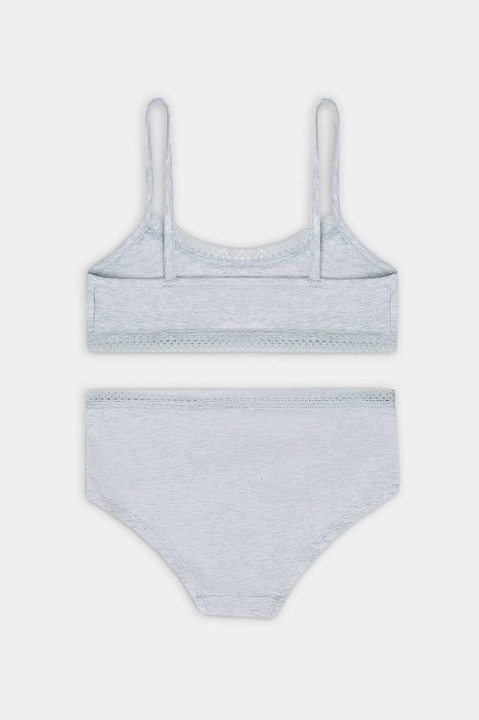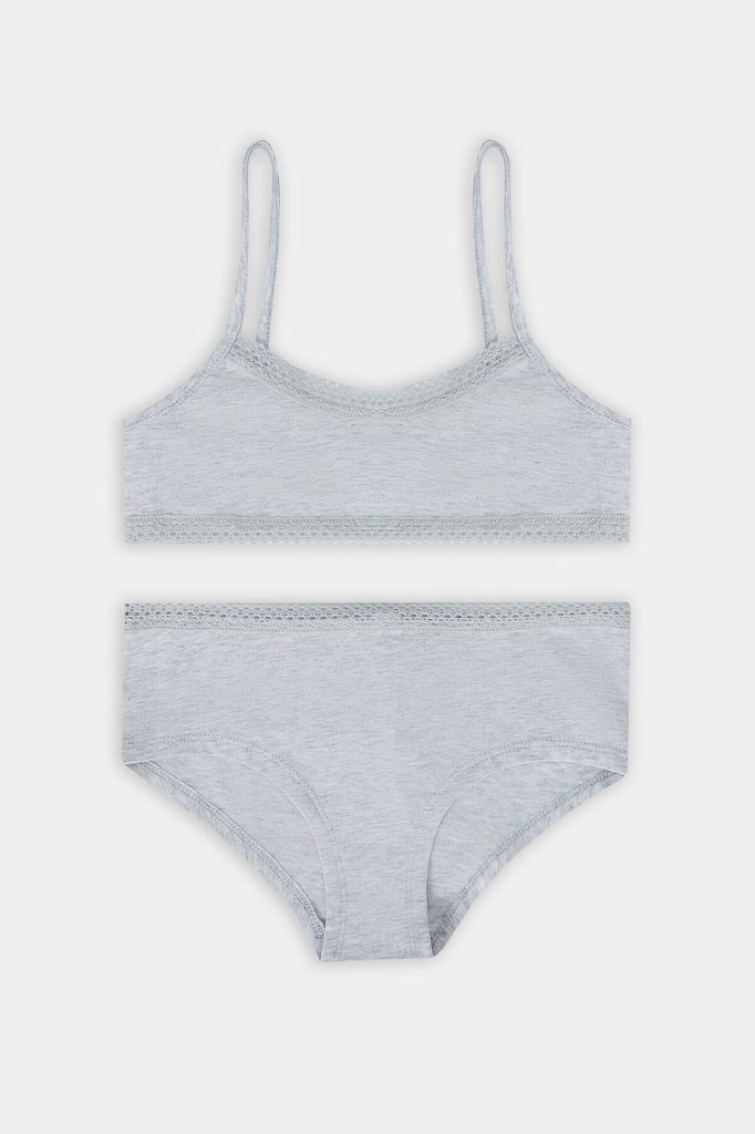 Топ с боковыми швами. проймы переходящие в бретель и верхний срез спинки окантованы бейкой, внутри жилка тканая 6мм (Devsel 13460W). По нижнему срезу переда и спинки и верхнему срезу переда настрачива... Показать описаниеется кружево 15мм, Devsel L20166-1.5 Трусы с боковыми швами. Ластовица из основного полотна. Нижние срезы трусов обработаны швом в подгибку. К верхнему срезу трусов притачана кружево 15мм, Devsel L20166-1.5