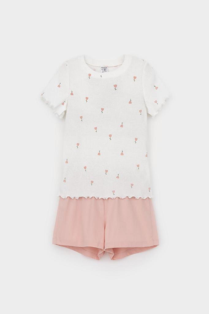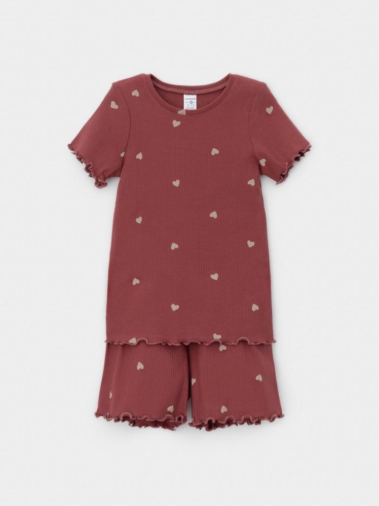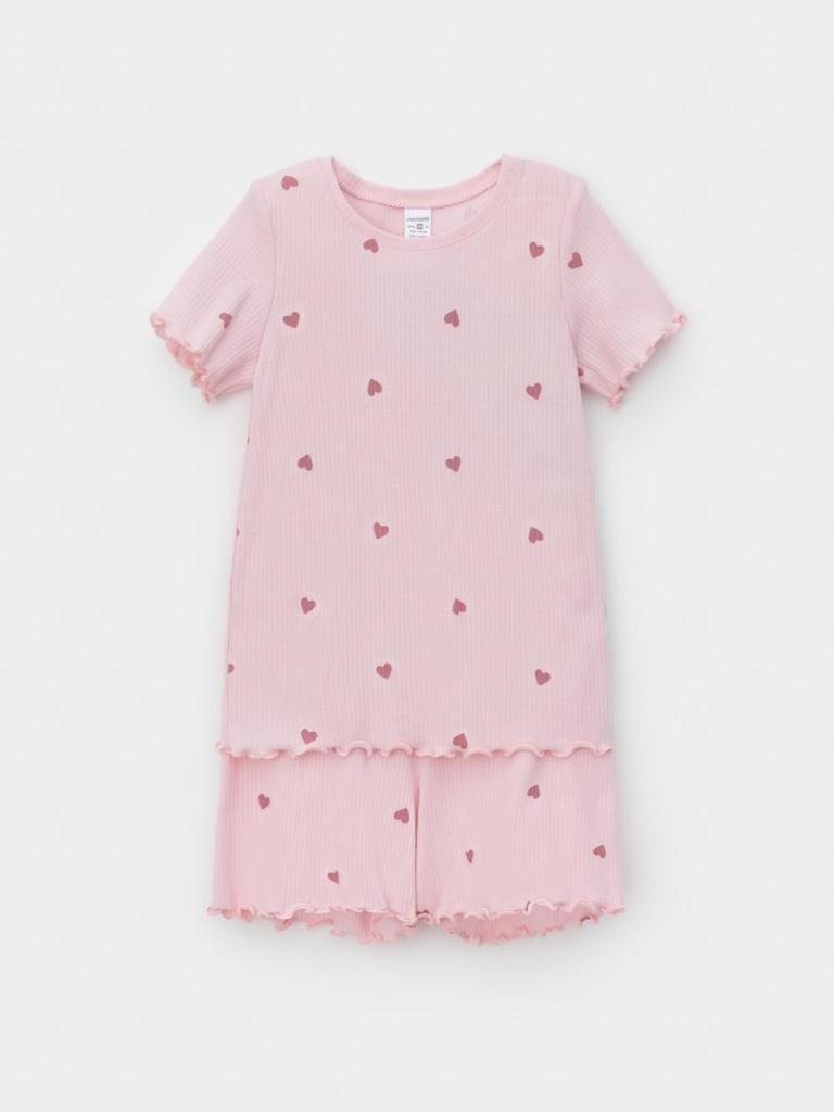 Трикотажная пижама в рубчик из натурального хлопка. Футболка с короткими втачными рукавами и шорты с эластичной резинкой в поясе. Оригинальная набивка выполнена из стойких текстильных гипоаллергенных ... Показать описаниекрасителей. Изделие сохраняет цвет и форму после многократных стирок. Все трикотажные полотна производятся в соответствии с нормами швейцарского сертификата ЭкоТекс.
