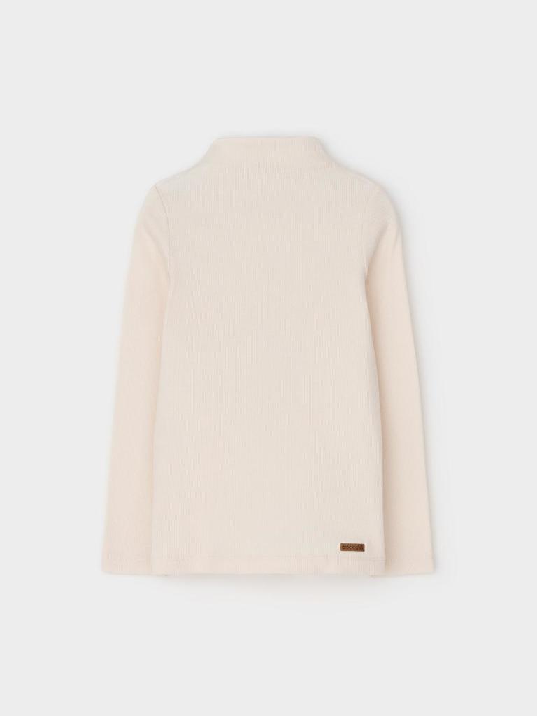 Базовая водолазка для девочки из эластичного трикотажа кашкорсе. Изделие имеет цельнокроенный воротник и длинные втачные рукава. Водолазка сохраняет цвет и форму после многократных стирок.