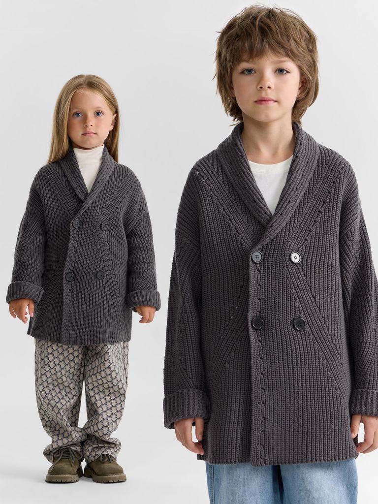 Этот джемпер станет незаменимой вещью в гардеробе вашего ребенка, обеспечивая тепло и комфорт в прохладную погоду. Джемпер имеет шалевый воротник и застегивается на пуговицы, что позволяет легко и быс... Показать описаниетро одевать и снимать его. Мягкая и приятная на ощупь пряжа не раздражает кожу ребенка, обеспечивая максимальный комфорт при носке.
