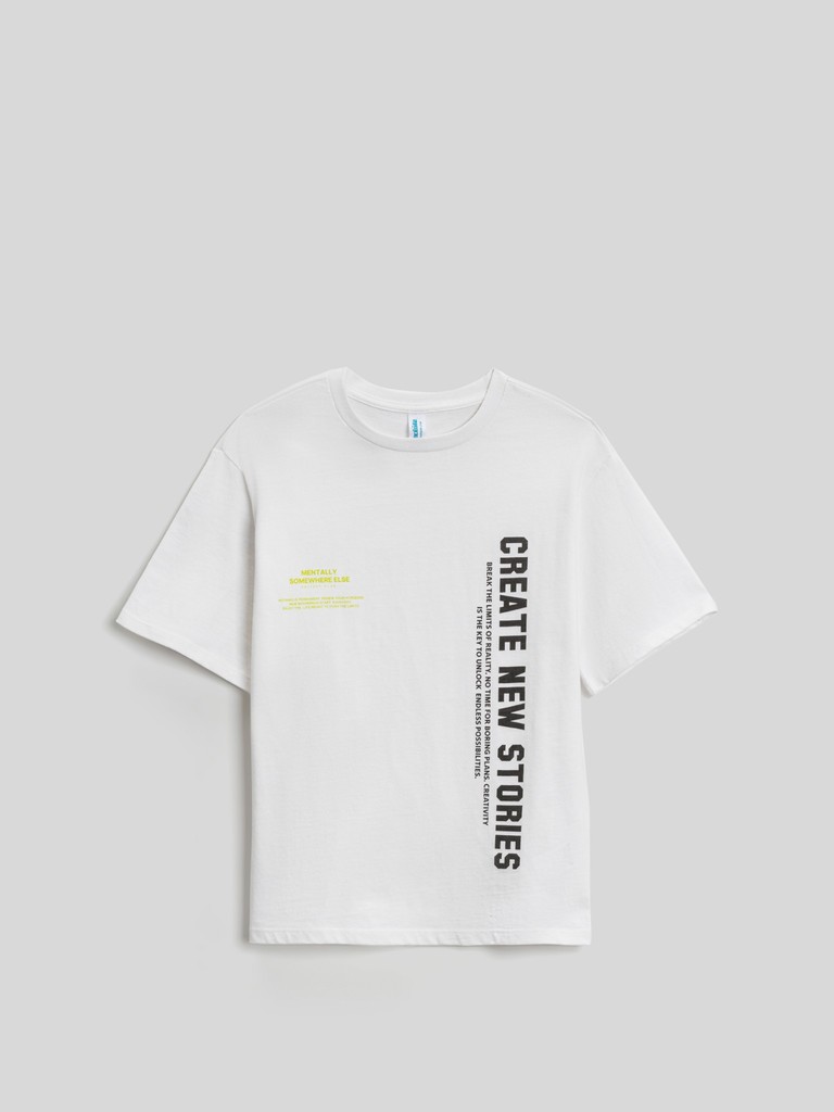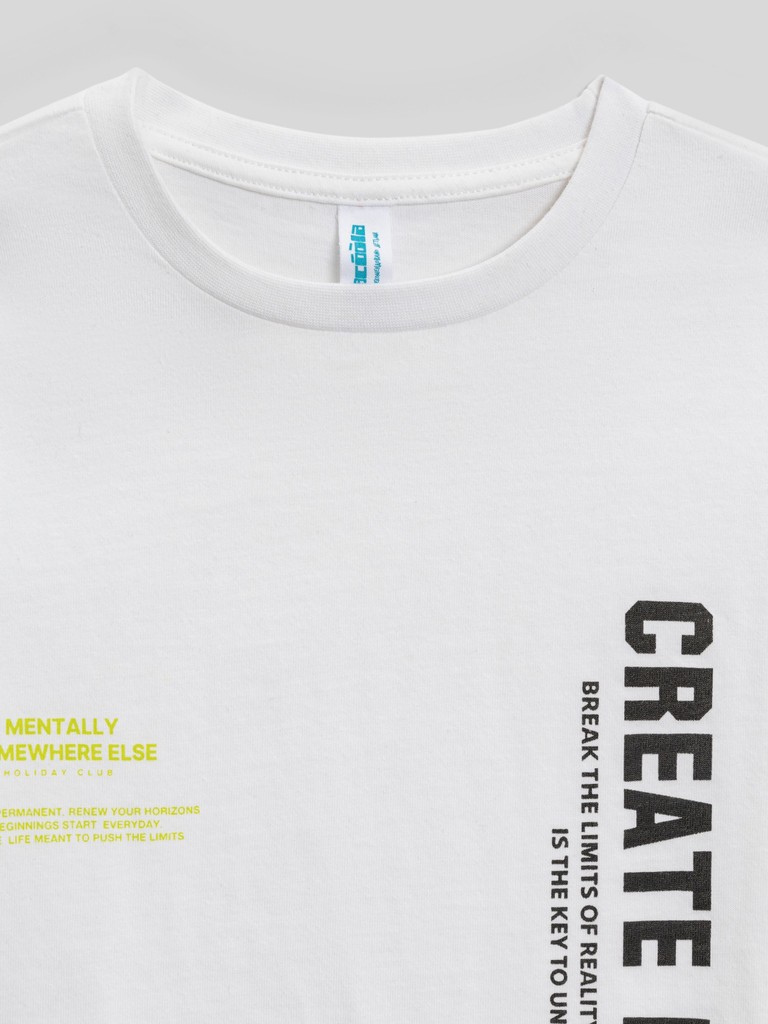 Оверсайз футболка для мальчика выполнена из кулира – легкого хлопокового полотна. Изделие прямого покроя, с короткими рукавами, со спущенной линией плеча. Круглый вырез горловины обработан эластичной ... Показать описаниебейкой из полотна компаньона. На полочке печать. Уход: только машинная стирка (руками не стирать!) при температуре 40 градусов, без предварительного замачивания. Изделия с печатью перед стиркой необходимо вывернуть на изнаночную сторону.