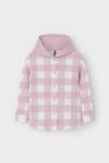 Свободная трикотажная рубашка для девочки с капюшоном. Выполнена из мягкого петельчатого футера. Застёгивается на кнопки. Модель с закругленным низом и спущенным плечом. По бокам разрезы.