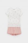 Трикотажная пижама из натурального хлопка. Футболка с принтом и короткими спущенными рукавами. У шорт в комплекте мягкий, эластичный пояс на резинке. Оригинальная набивка выполнена из стойких, гипоалл... Показать описаниеергенных текстильных красителей. Комплект сохраняет цвет и форму после многократных стирок. Все трикотажные полотна производятся в соответсвии с нормами Швейцарского сертификата ЭкоТекс.