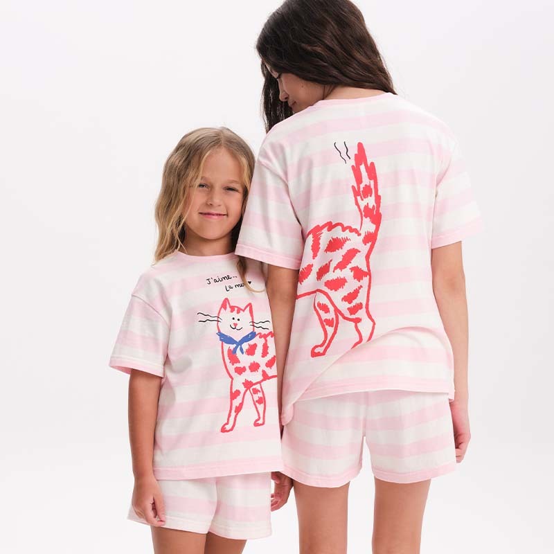 Состав: верх: 100%хлопок, низ: 100%хлопокОписание: Детский пижамный костюм двойка - это мягкая футболка с коротким рукавом и удобные шорты, выполненные из натуральных материалов. Пижама для девочки из... Показать описаниеготовлена из 100% хлопка, что делает этот набор идеальным выбором как для дома, так и для спокойного сна малыша или подростка. Пижамка хлопковая летняя приятна на ощупь и прекрасно пропускает воздух, позволяя коже ребенка дышать. Такой комплект с бриджами и майкой можно использовать в качестве домашней одежды или как спальный костюм, носить на даче, в садике или брать с собой в поездку на море. Свободная футболка в полоску, плечо немного спущено, рукава широкие. Широкая и мягкая резинка в поясе не перекручивается и не давит. Отделка горловины из эластичной рибаны — она не растягивается, ребёнку удобно надевать и снимать пижаму. Модель станет отличным вариантом для пижамной вечеринки в кругу друзей и подруг. Ночной костюмчик свободного кроя незаменим для зимы и лета, осени и весны. Уютный набор имеет широкий размерный ряд, что делает изделие доступным как для малышей, так и для подростков - высоких и невысокого роста. Милая молодежная двойка как из Пинтерест станет идеальным подарком на 1 сентября и выпускной, День рождения или Новый год.