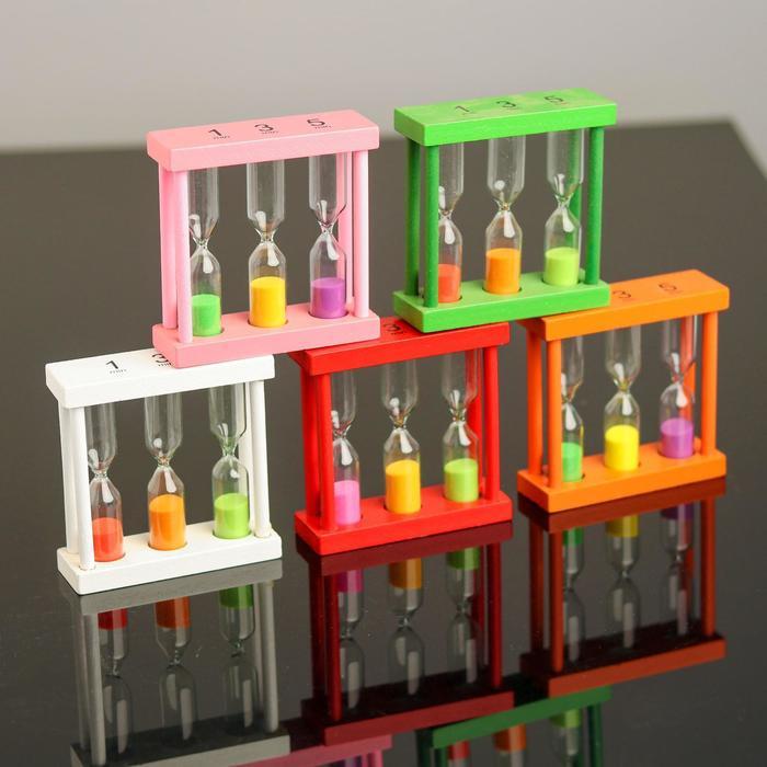 Песочные часы «Изучаем время» — это простой и наглядный способ познакомить ребёнка с понятием времени. Компактный размер и деревянная основа делают их удобными для детских рук и безопасными для игры. ... Показать описаниеОсобенности * Изготовлены из натурального дерева, экологичного и долговечного материала. * Компактные размеры 3?9?9 см — удобно брать с собой и хранить. * Подходят для детей от 3 лет. Как использовать Часы помогают ребёнку понять, как течёт время, развивают внимание и усидчивость. Наблюдая за движением песка, малыш учится концентрироваться и осваивает базовые временные интервалы. Это отличный инструмент для игр и обучения в домашних условиях. Простота и функциональность — главные преимущества песочных часов. Они не требуют батареек, легко вписываются в интерьер и становятся первым шагом в изучении времени для малышей. Это полезный и практичный подарок для любознательных детей. Дополнительно Песочные часы рассчитаны на 3 отрезка времени * 1 мин. * 3 мин. * 5 мин. При определении времени допустима погрешность в 5–7 секунд.