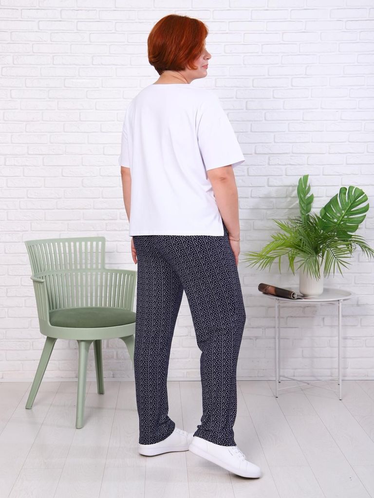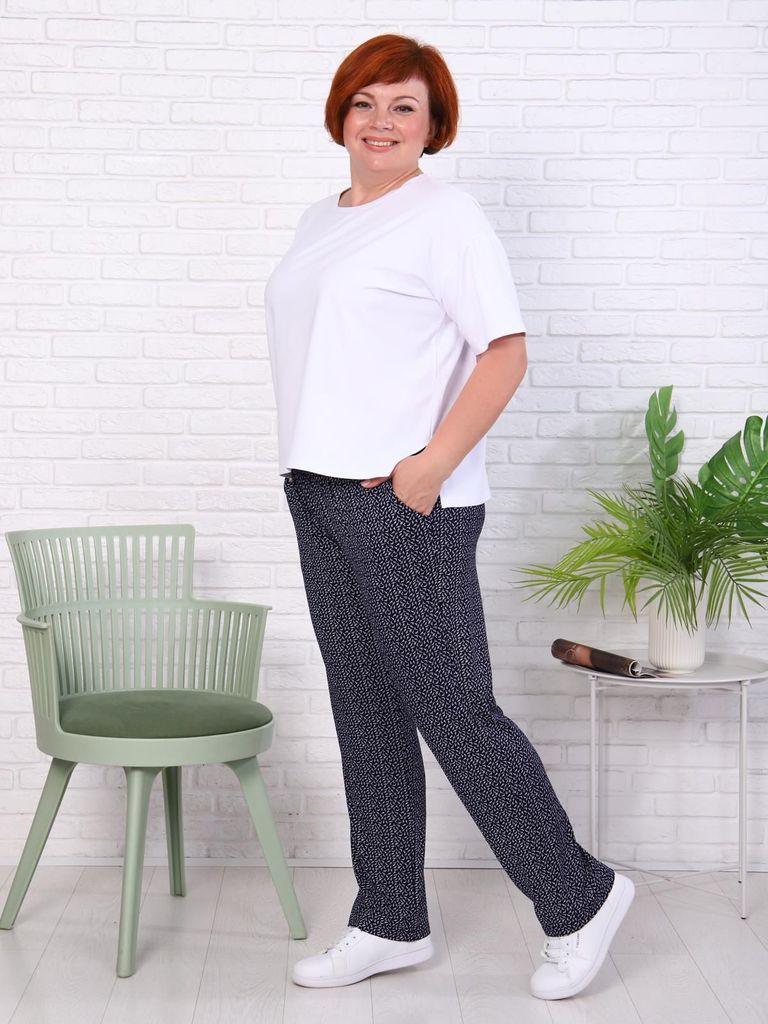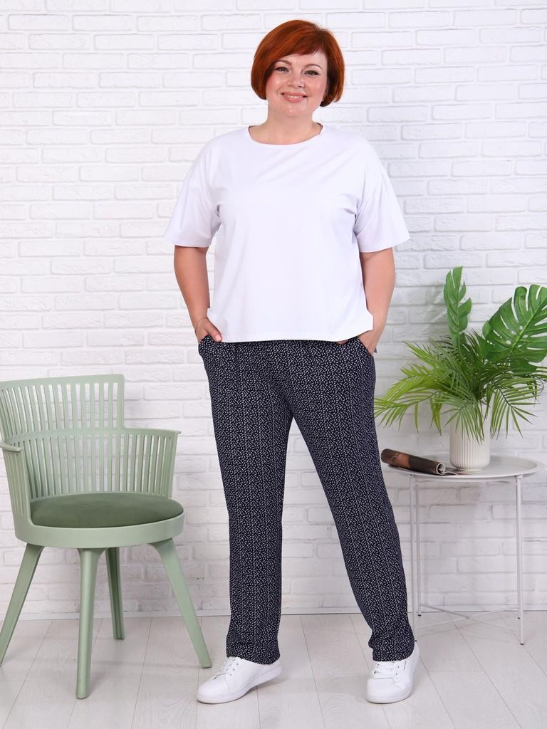 Состав: 80%Хлопок 20%ПЭ Параметры модели на первом фото: Рост 172, бюст 88, талия 64, бедра 88 Брюки выполнены из премиального футера трехнитки без начеса. Модель дополнена эластичным поясом на резинк... Показать описаниее и хлопковым шнурком с золотистой фурнитурой. По бокам два кармана. Наличие эластана в составе гарантирует формоустойчивость и износостойкость изделия. Изделие сочетается в костюме с худи D49.052