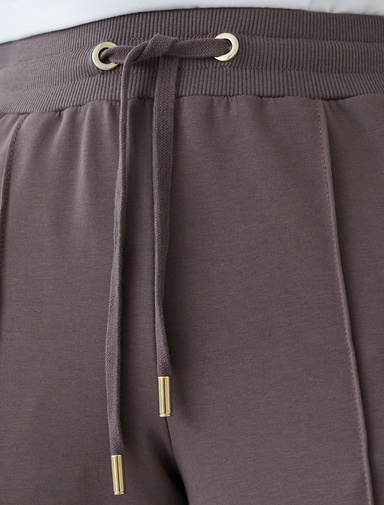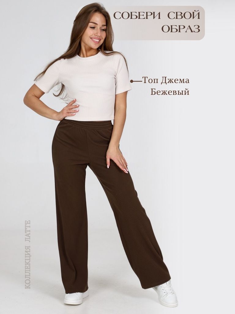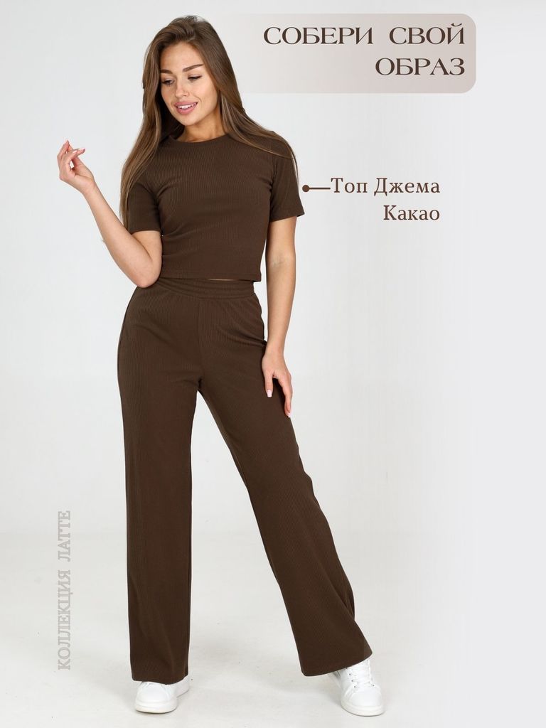 Состав: 95%Хлопок 5%ПУ Плотность: 240 Г/м2 Брюки актуального кофейного цвета прямого кроя выполнены из премиального футера-двухнитки. Лаконичный силуэт поддерживают застроченные стрелки, зрительно выт... Показать описаниеягивающие силуэт. Удобный пояс на резинке регулируется хлопковым шнурком с золотистой фурнитурой. Наличие эластана в составе изделия гарантирует комфорт и долговечность изделия. Эластичный материал хорошо пропускает воздух, позволяя телу дышать, и легко тянется, не ограничивая движения. Эти уютные брюки созданного для вашего комфорта. Нежный и стильный вариант подходит и беременным женщинам благодаря своей идеальной посадке. Свободный прямой крой обеспечивает свободу движений и максимальное удобство в любых ситуациях, поэтому они подойдут и на большие размеры, включая 56 размер. Вы можете выбрать брюки подходящие под Ваш рост, представлены на высокий рост и низкий. Стильный расклешенный крой добавляет изюминку в ваш образ. Эти брюки универсальны и могут стать отличным вариантом, как для занятий спортом, так и для повседневной носки. Они легко вписываются в повседневный образ, благодаря универсальности и элегантности. Достоинства фигуры подчеркиваются, а силуэт визуально вытягивается за счет кроя палаццо. Стильный расклешенный крой добавляет изюминку в ваш образ. В этих спортивных брюках вы будете чувствовать себя комфортно и уверенно, наслаждаясь каждым моментом дня.