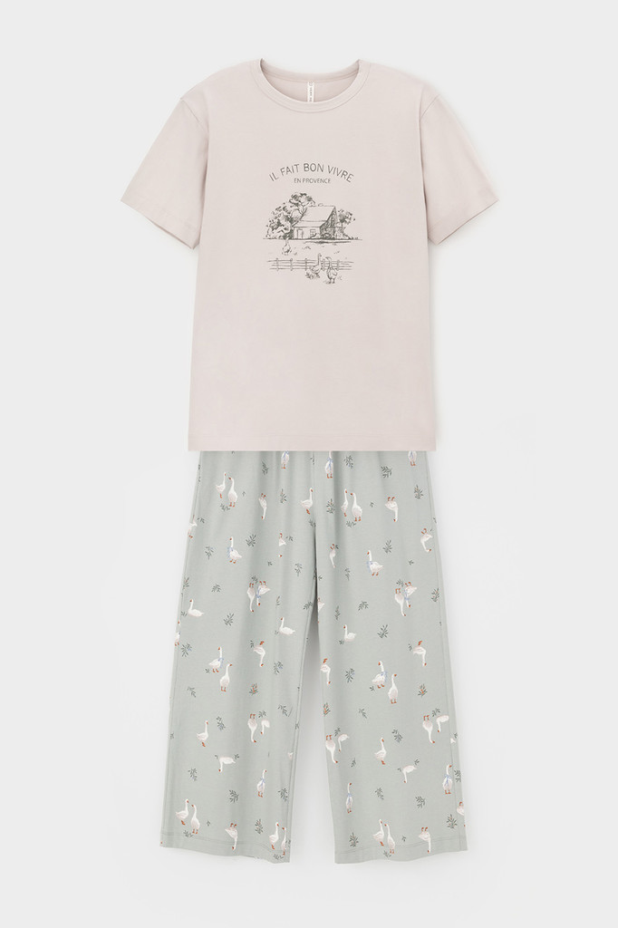 Комплект для сна и отдыха из натурального хлопка с добавлением лайкры. Футболка стандартной длины комфортно садится по фигуре. Укороченные просторные брюки с карманами из набивного трикотажа с мягким ... Показать описаниепоясом на резинке. Все трикотажные полотна производятся в соответствии с нормами Швейцарского сертификата ЭкоТекс. Сделано в России - комфортная посадка - гипоаллергенные красители