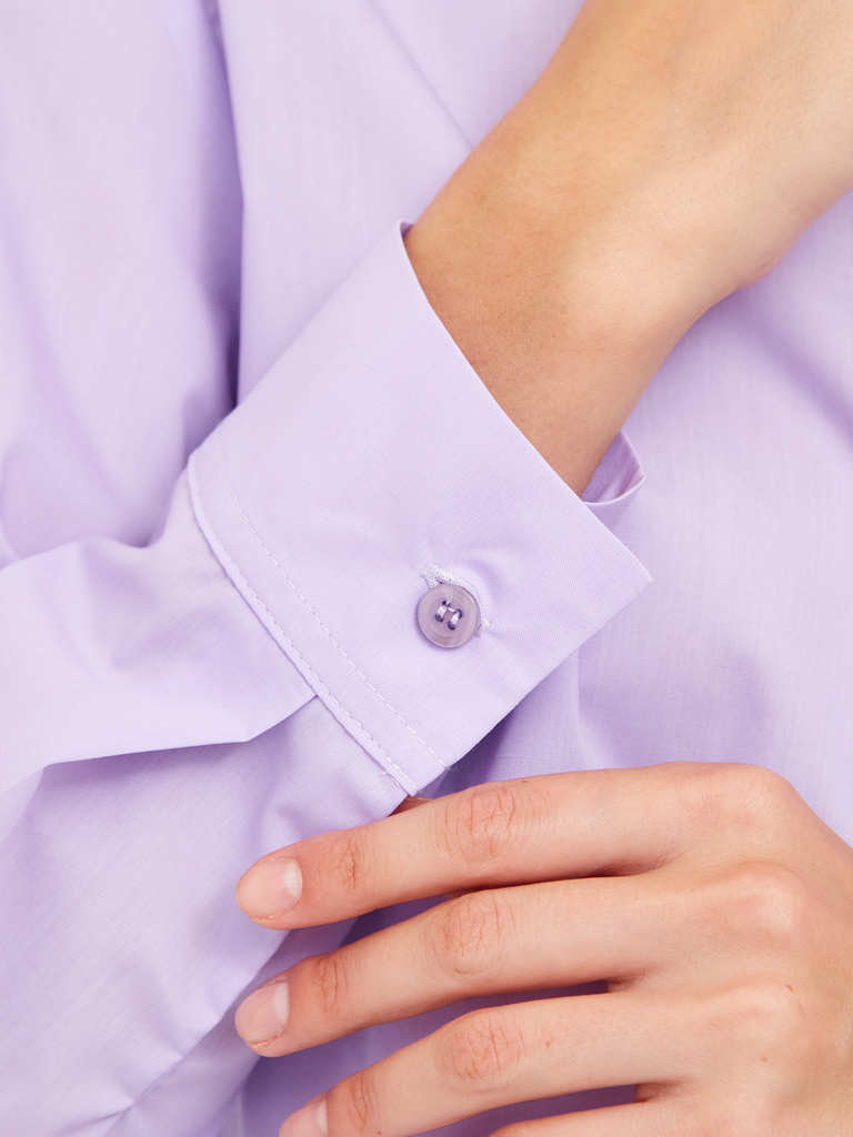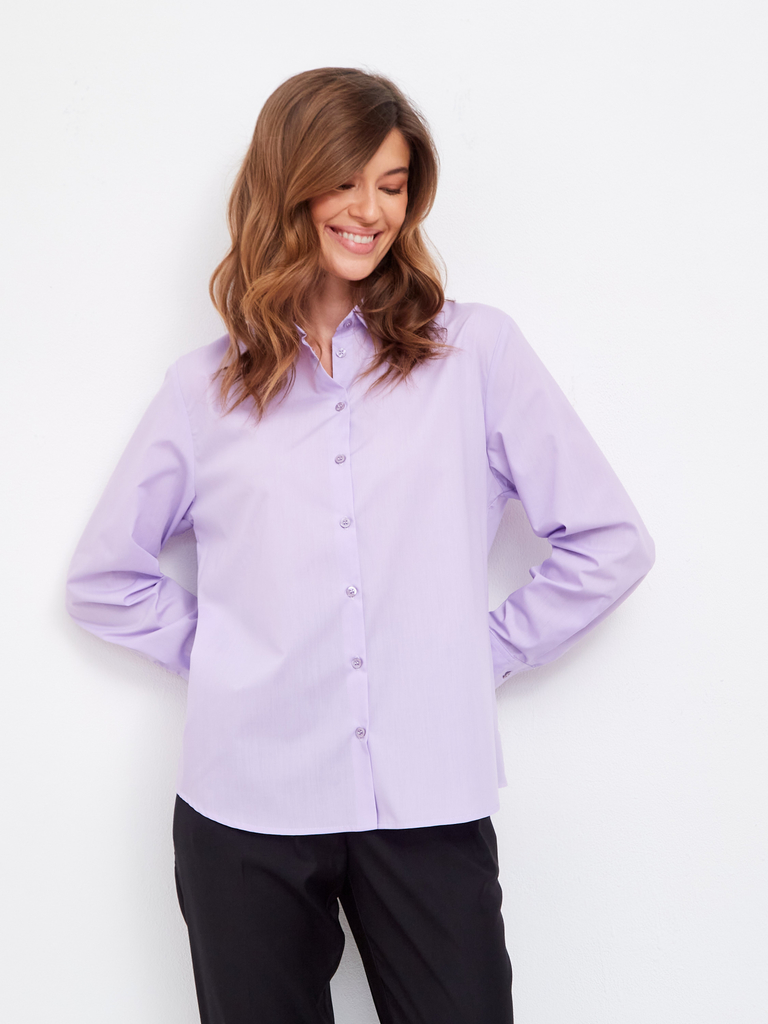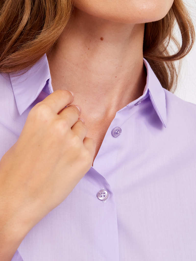 Состав: 100%Хлопок Параметры модели на первом фото: Рост 172, бюст 88, талия 64, бедра 88 Размер товара на первом фото: 42 Блузка выполнена из премиального хлопкового поплина Лаконичная модель с высок... Показать описаниеими манжетами и пуговицами из натурального перламутра хорошо впишется в любой гардероб и внесет яркий летний акцент в образ. Натуральный состав ткани обладает высокой воздухопроницаемостью и гигроскопичностью. В изделии будет комфортно, даже в самое жаркое время года. Подходит для любой фигуры. На спинке фирменный логотип бренда.