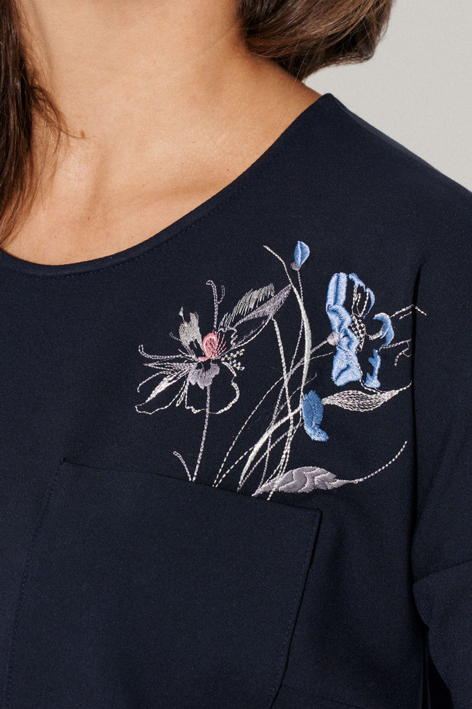 Описание Блузка женская из смесовой ткани для повседневной носки прямого силуэта. Перед имеет вышивку и закругленную линию низа. Застежка на восемь обметанных петель и восемь пуговиц. Спинка имеет кок... Показать описаниеетку и две складки, а также закругленную линию низа. Горловина обработана рубашечным воротником с отрезной стойкой. Низ рукава обработан притачной манжетой с застежкой на одну обметанную петлю и одну пуговицу. Такой креативный вариант блузки обязательно привлечет к вам внимание. Блузка станет вашей любимой вещью в гардеробе. Параметры Рост: 164 50 Блузка: Длина изделия - 67.5см, Длина рукава - 60см, Ширина плеча - 15см, Ширина по груди - 58см, Ширина по низу - 61.5см, Ширина рукава - 23см; 52 Блузка: Длина изделия - 67.5см, Длина рукава - 60см, Ширина плеча - 15.2см, Ширина по груди - 58см, Ширина по низу - 63.5см, Ширина рукава - 23.8см; 54 Блузка: Длина изделия - 68.5см, Длина рукава - 60см, Ширина плеча - 15.4см, Ширина по груди - 58см, Ширина по низу - 65.5см, Ширина рукава - 24.6см; 56 Блузка: Длина изделия - 68.5см, Длина рукава - 60см, Ширина плеча - 15.6см, Ширина по груди - 58см, Ширина по низу - 67.5см, Ширина рукава - 25.4см; 58 Блузка: Длина изделия - 68.5см, Длина рукава - 60см, Ширина плеча - 15.8см, Ширина по груди - 58см, Ширина по низу - 69.5см, Ширина рукава - 26.2см; Состав и уход Состав: Хлопок/cotton 76%; полиэстер/polyester 22%; эластан /elastane 2%. Уход: * Стирка при температуре воды до 30°C * Не отбеливать * Гладить при температуре утюга до 110°C * Вертикальная сушка * Барабанная сушка запрещена * Профессиональная сухая чистка в тетрахлорэтилене и во всех растворителях, внесенных в список для символа F.