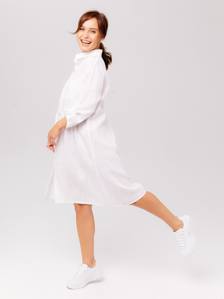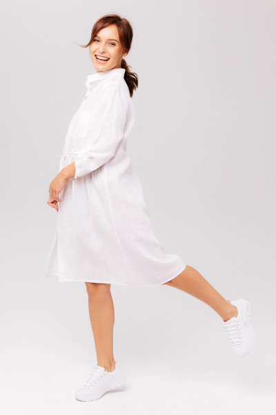 Платье-туника 100 % лен. Силуэт свободный. Воротник отложной на стойке. Рукав втачной на манжете 3/4. Застежка на пуговицах. Ткань сорочечная, тонкая. - В изделии из натуральных волокон возможно ... Показать описаниеналичие уплотнений и образование "пуха" Длина изделия: 100-102 см. длина по спинке. Длина рукава: 46 см. Состав: 100% лен Рекомендуемый размер: 44-56 р. Описание