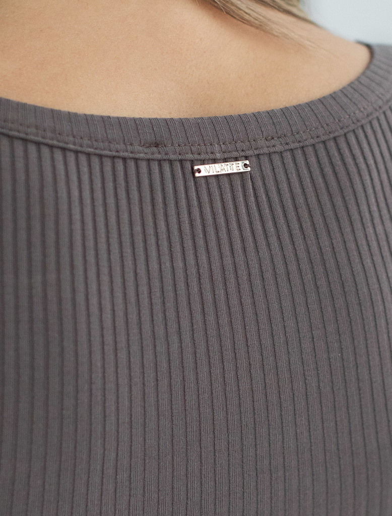 Состав: 95%Хлопок 5%ПУ Плотность: 200 Г/м2 Топ выполнен из трикотажа в широкий рубчик. Эластичный хлопковый трикотаж сидит по фигуре, не сковывает движений и очень комфортный в носке. Фактура вертикал... Показать описаниеьных полос визуально стройнит и вытягивает силуэт. Базовое изделие хорошо впишется в любой гардероб. Идеально подходит для многослойных образов.