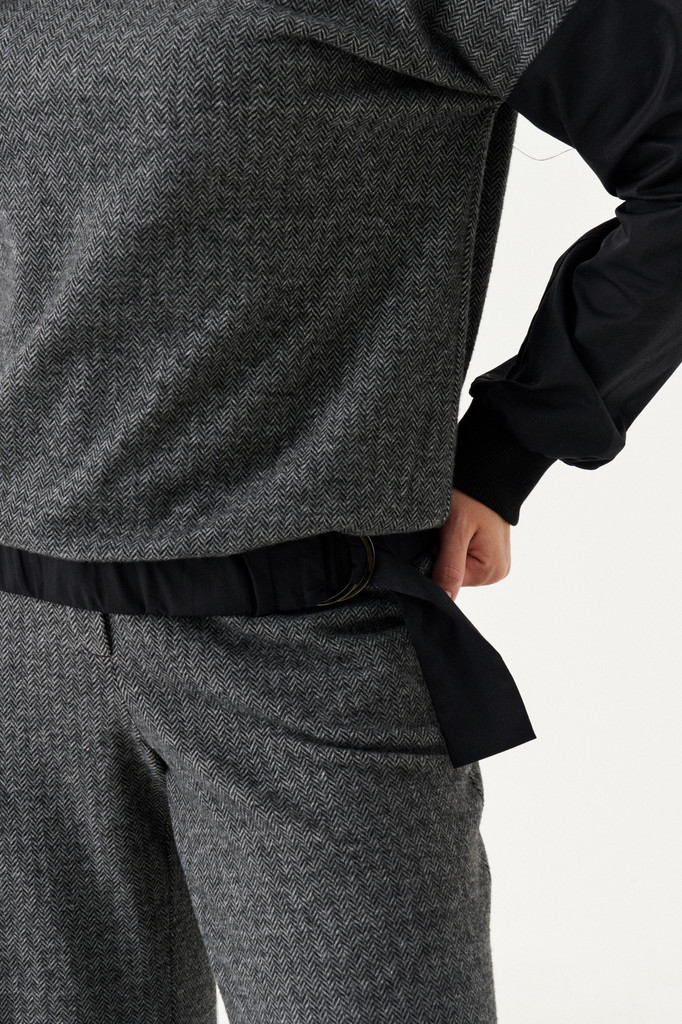 Видео: https-//hassfashion.ru/upload/iblock/46b/pgbfurzyqf6g24fepe6ilsig3q0g6cqd.mp4 осень-зима 85% Хлопок, 10% Полиэстер, 5% Спандекс Свитшот регулярного силуэта со спущенной линией плеча. Горловина ... Показать описаниепо типу R-neck. По низу рукавов — эластичная резинка. По низу изделия — эластичный шнурок с фиксатором для затягивания. По передней и задней части изделия — вертикальные резы с тремя перпендикулярными застроченными на треть складками. Выполнен из хлопка (85%) с добавлением полиэстера и спандекса, что обеспечивает комфорт и долговечность. Представлен в бордовом оттенке.
