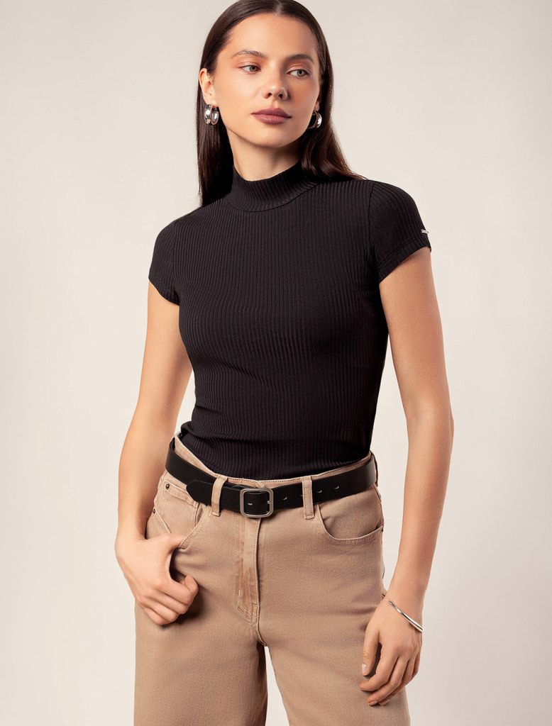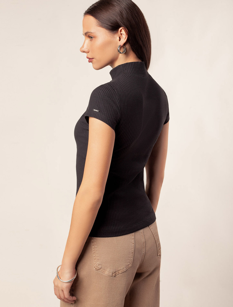 Состав: 95%Хлопок 5%ПУ Плотность: 230 Г/м2 Водолазка с коротким рукавом выполнена из фактурного трикотажа в рубчик. Модель идеально сидит по фигуре не сковывая движения. Хлопковый трикотаж поддерживае... Показать описаниет оптимальную температуру тела, поэтому в изделии будет комфортно в течении всего дня. Наличие эластана в составе гарантирует формоустойчивости. Водолазка отлично впишется в деловой дресс-код и подойдет для повседневного аутфита.