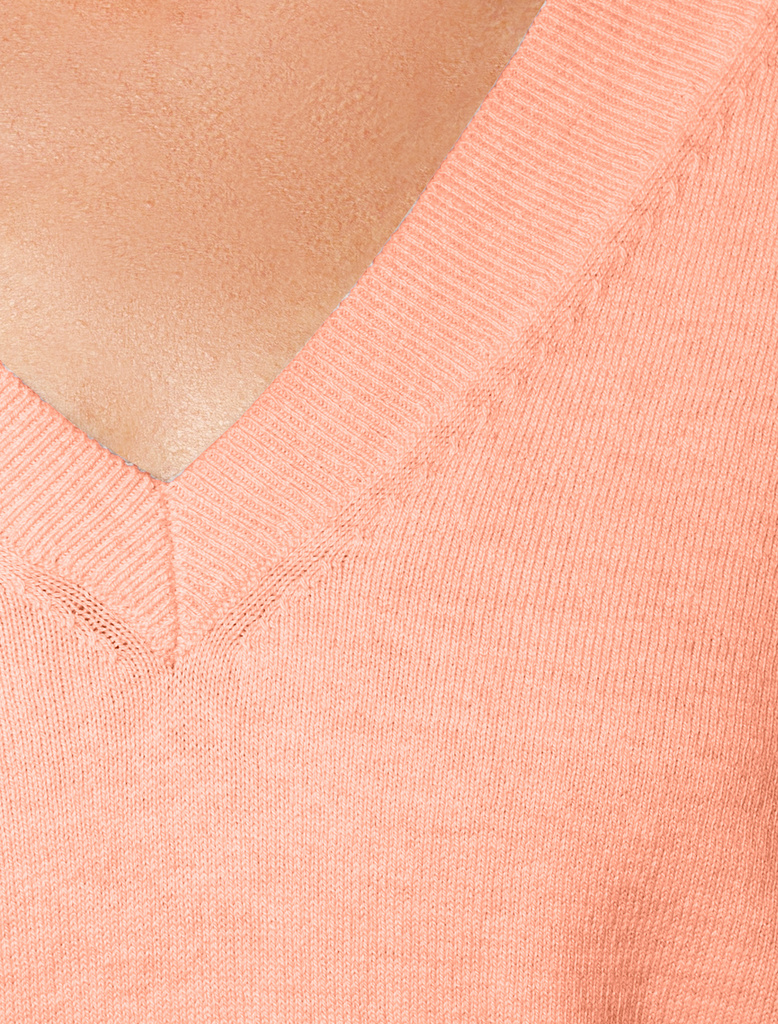 Состав: 70%Хлопок 21%ПА 9%Кашемир Плотность: 12 GG Размер товара на первом фото: 42 Джемпер тонкой вязки выполнен из хлопка с добавлением кашемира. Модель с V-вырезом свободного силуэта. Мягкая и очен... Показать описаниеь приятная пряжа в рубчик совершенно не колется, сохраняет тепло при этом не перегревая, гарантируя безупречный комфорт.
