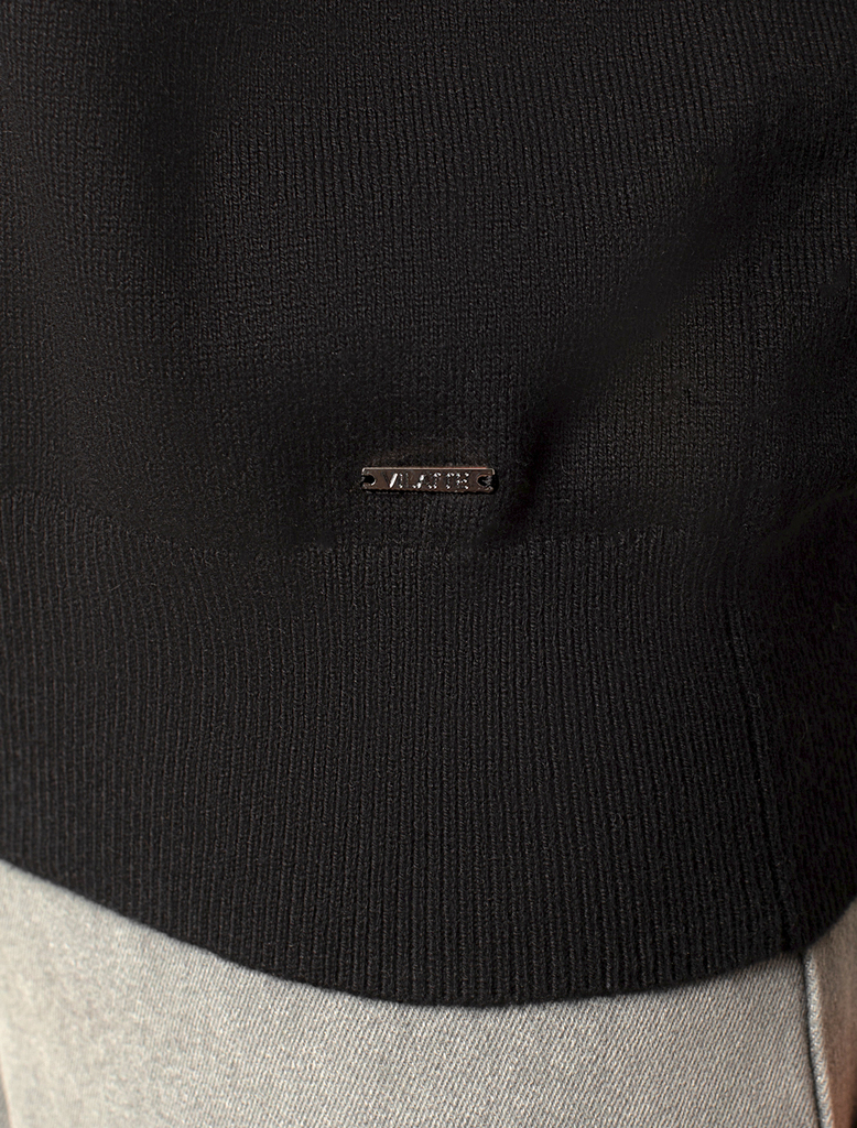 Состав: 55%Хлопок 45%ПАН (акрил) Параметры модели на первом фото: Рост 190, бюст 108, талия 87, бедра 104 Лаконичный джемпер черного цвета. Для изготовления модели использовали тонкую пряжу из длиннов... Показать описаниеолокнистого хлопка премиального качества. Он мягче, прочнее и эластичнее обычного, а на ощупь очень нежный, поэтому вещь комфортно садится по фигуре и особенно приятно ощущается на теле. Модель дополнили вставками в рубчик по плечам и короткой молнией, благодаря которой изделие с высоким воротом удобно надевать и снимать через голову.