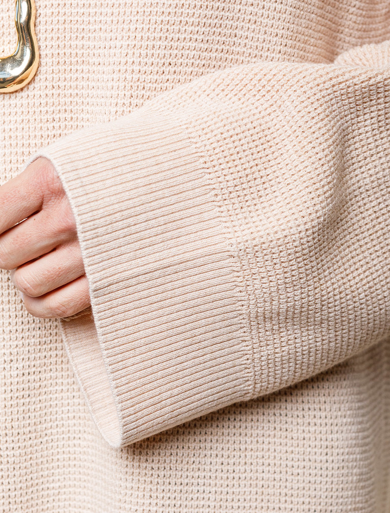 Состав: 45%ПЭ 25%Вис 18%ПА 7%Ангора 5%Мохер Параметры модели на первом фото: Рост 172, бюст 88, талия 64, бедра 88 Джемпер в кофейном оттенке выполнен из уютной меланжевой пряжи крупной вязки с ангоро... Показать описанией и легким пушистым мохером. Модель с фактурным узором косы очень приятная на ощупь, в которую хочется укутаться. Отлично согревает, а свободный силуэт позволяет носить изделие на футболку или рубашку. Из украшений металлический логотип бренда.