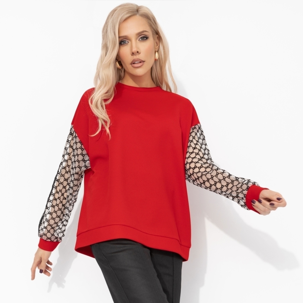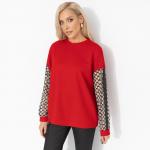 ТН ВЭД: 6110309900. Состав: Фукро однотонный, сетка флак (85% п/э, 15%эластан) Плотность ткани: Средняя. Тип ткани: Трикотаж. Декоративные элементы: Контрастная отделка. Дополнительный цвет ткани: Чер... Показать описаниеный. Карманы: Нет. Основной цвет ткани: Красный. Отрезная талия: Нет. Подклад: Нет. Резинка по талии: Нет. Рисунок/раппорт: Каждое изделие уникально из-за расположения рисунка на ткани Сезон: Круглогодичный. Силуэт: Свободный. Стиль: Повседневный. Параметры модели на фото: Грудь: 84 см. Талия: 67 см. Бёдра: 91 см. Рост: 167 см. Размер на модели: 44. Длина изделия: * 44 размер - 66 см. * 46 размер - 66 см. * 48 размер - 68 см. * 50 размер - 68 см. * 52 размер - 70 см. * 54 размер - 70 см. Длина рукава: * 44 размер - 62 см. * 46 размер - 62 см. * 48 размер - 63 см. * 50 размер - 63 см. * 52 размер - 64 см. * 54 размер - 64 см. Обхват груди: * 44 размер - 116 см. * 46 размер - 116 см. * 48 размер - 124 см. * 50 размер - 124 см. * 52 размер - 132 см. * 54 размер - 132 см. Обхват талии: Обхват бёдер: Вес товара, кг: * 44 размер - 0.24. * 46 размер - 0.24. * 48 размер - 0.25. * 50 размер - 0.26. * 52 размер - 0.27. * 54 размер - 0.27. Габариты товара (ДхШхВ), см.: * 44 размер - 32 х 32 х 3. * 46 размер - 32 х 32 х 3. * 48 размер - 32 х 32 х 3. * 50 размер - 32 х 32 х 3. * 52 размер - 32 х 32 х 3. * 54 размер - 32 х 32 х 3. Подробное описание: 1598576468