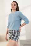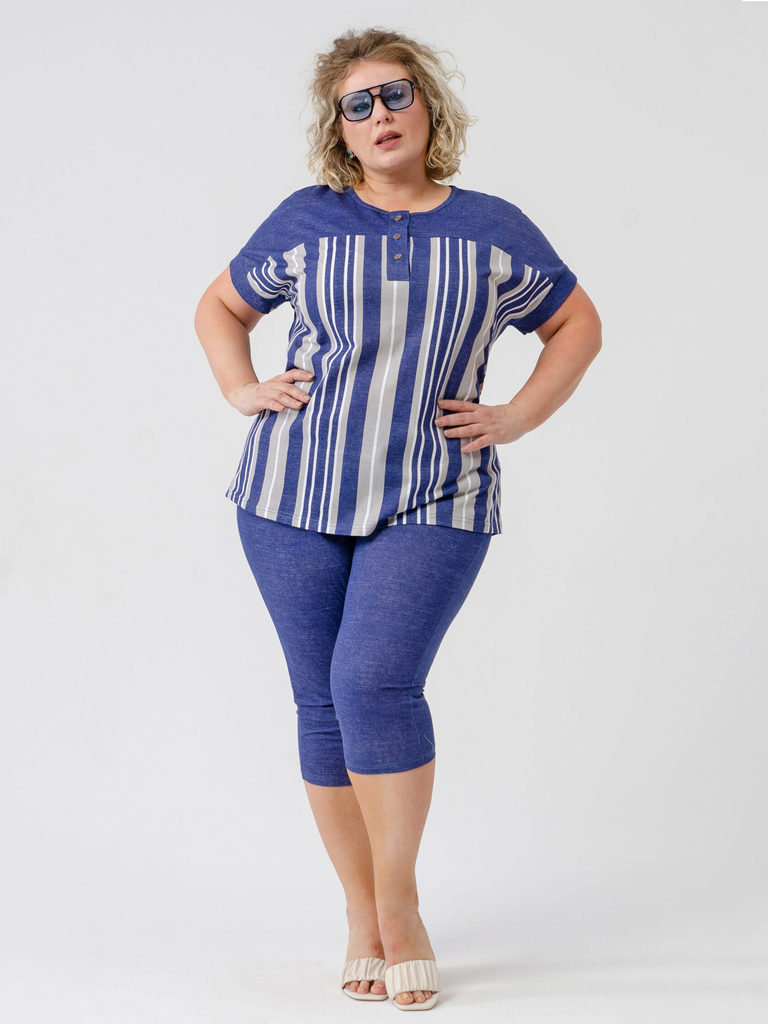 Состав: 70%Лиоцелл (Вис) 30%ПЭ Параметры модели на первом фото: Рост 172, бюст 88, талия 64, бедра 88 Блузка свободного кроя в стиле кимоно выполнена из плотного лиоцелла. Модель со спущенным плечом и... Показать описание застежкой на одну пуговицу. Ткань изделия отлично держит форму, плавно драпируется и не просвечивает. В теплое время года приятно охлаждает кожу. Добавление синтетических волокон в составе изделия, предотвращает сминаемостьи поддерживает формоустойчивость. Блузка сочетается в костюме с брюками D24.261, D24.265, D24.267, шортами D28.057 и юбкой D24.261, а также очень эффектно с белыми шортами и джинсами.