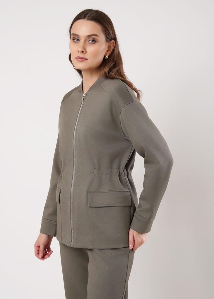 Описание Куртка на молнии удлинённая из трикотажного полотна плотное пике. По горловине стойка. По переду и спинке кокетки. Рукав спущенный, внизу манжет. По талии внутренняя кулиса на резинке.Спереди... Показать описание накладные карманы с клапаном. По низу изделия потайной стежок.