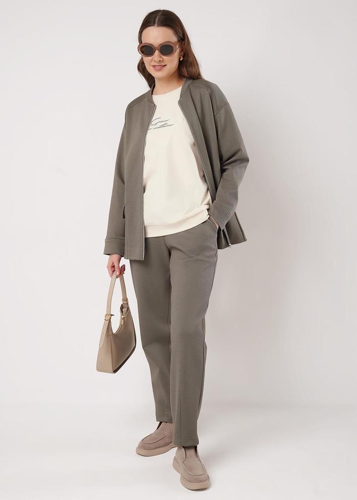 Описание Куртка спортивная из трикотажного полотна дабл фейс с застежкой на кнопки. По горловине и борту планка из кашкорсе. Длинный рукав со спущенной линией плеча. По низу рукава вязаный манжет, по ... Показать описаниенизу изделия манжет из основного полотна. Спереди принт.