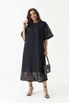 Платье изо льна. Модель А-образного силуэта, без рукавов. Перед и спинка со средним швом. Вырез горловины округлый по переду и V-образный по спинке. В боковых швах высокие разреры. По краям разрезов в... Показать описание шлёвки вставлен декоративный шнурок.