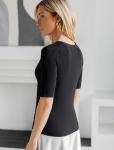 Трикотаж - Кулирка (Хлопок 100%). Легкая женская футболка выполнена из полотна "кулирка" (Хлопок 100%). Особенностью этой модели является необработанные края рукавов, горловины и низа.