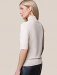 Видео: https-//hassfashion.ru/upload/iblock/b6e/rwi5he9pas6023jcdyond87jj1p7ren4.mp4 весна-лето 60% Хлопок, 40% Лен Блуза расслабленного силуэта с горловиной-лодочкой и короткими рукавами до уровня ло... Показать описаниектя. По спинке расположена планка с застежкой на пуговицы.