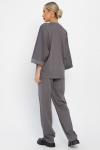 Состав : 95% полиэстер, 5% эластан Материал : трикотаж Цвет : серый Принт : отсутствует Силуэт : свободный Карманы : есть Резинка в поясе : да Вид застежки : без застёжки Декоративные элементы : отсут... Показать описаниествуют Обхват бёдер : 46 - 102, 48 - 106, 50 - 110, 52 - 114, 54 - 118, 56 - 122 Дополнительные параметры размеров : 44 - длина рукава, 46 - длина верха, 48 - длина брюк Стильный и удобный женский брючный костюм из трикотажа в серых тонах — это то, что нужно для создания модных и комфортных образов на каждый день! Блузка с V-образным вырезом подчёркивает линию шеи и визуально удлиняет её. Рукава цельнокроеные, с удобными манжетами. По переднему полотну проходит кулиска, которая придаёт костюму современный вид. Брюки на талии с резинкой и боковыми карманами — это практичное решение для повседневной жизни. Они удобны и функциональны, что делает этот костюм идеальным выбором для любых дел, встреч или отдыха. Этот костюм станет прекрасным дополнением вашего гардероба. Он подчеркнёт вашу индивидуальность и подарит ощущение уверенности и комфорта в любой ситуации. Внимание! Рекомендуем ориентироваться на размерную сетку и выбирать свой привычный размер, согласно размерной таблице. *Допуск отклонения длины при массовом производстве 1-3 см является нормой. Уход за изделием: Ручная стирка или стирка в машине при температуре до 30 °C, деликатный режим. Не использовать отбеливатели. Разрешена глажка при температуре до 110 °C. При глажке использовать специальную насадку на подошве утюга, гладить с паром. Не замачивать и не выжимать. Стирать изделие наизнанку, отдельно от других вещей.