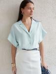 Состав: 55%Вис 45%Лиоцелл (Вис) Плотность: 115 Г/м2 Блузка светло-лазурного цвета сочетает в себе комфорт и элегантность благодаря материалу из вискозы с лиоцеллом. Аккуратный отложной воротник подчер... Показать описаниекивает утонченность образа, а широкие короткие рукава привлекают внимание и делают силуэт современным. Спущенная линия плеча формирует расслабленный, но стильный внешний вид, что идеально для тех, кто ценит индивидуальность и уверенность в деталях. Крой продуман так, чтобы подчеркивать достоинства фигуры и на больших размерах, создавая гармоничный силуэт без лишних усилий. Ткань из вискозы с добавлением лиоцелла обеспечивает приятные ощущения и отличную посадку, струится на теле и охлаждает в жаркую погоду. При пошиве использована технология «чистый край» по всей длине центральной планки и низу изделия. Это признак премиум качества — «чистый край» вместо оверлока. Блузку можно носить с топом, не застегивая — при этом распахнутая блузка будет выглядеть максимально эстетично. Рубашка легко впишется как в деловой гардероб, так и в повседневный стиль, позволяя выглядеть безупречно независимо от ситуации.