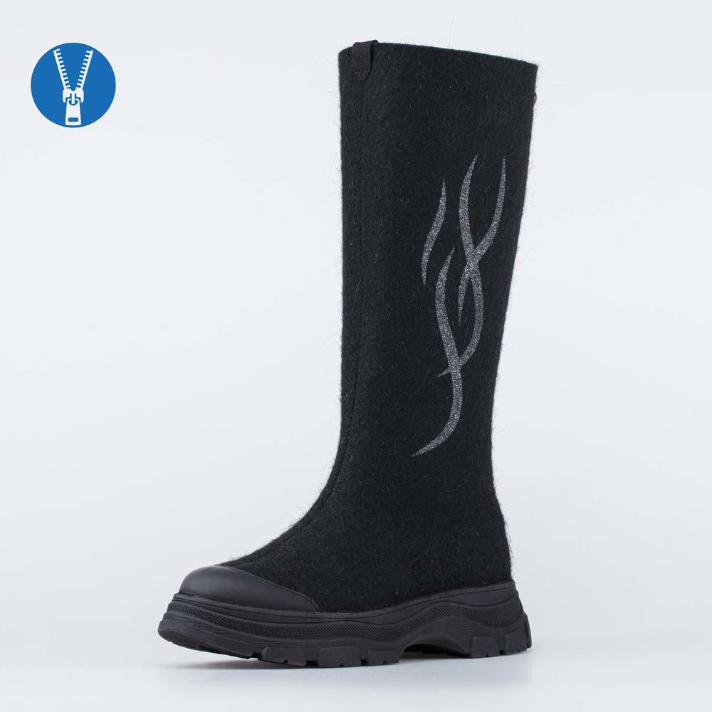 Описание Описание модели Женские валенки выполнены в черном цвете. Верх и стелька - из натурального войлока, на 100% состоящего из овечьей шерсти. Он дарит ногам целебное сухое тепло и оказывает масса... Показать описаниежный эффект. Застежка-молния позволяет быстро обуваться и разуваться. Морозостойкая подошва из ТЭП (термоэластопласта) обеспечивает устойчивость на зимних покрытиях, а ее толщина - дополнительную теплоизоляцию. Валенки украшены узором. Модель анатомически правильная: пяточная часть приподнята по отношению к носочной, а стелька из натурального войлока/шерсти приформовывается к своду стопы, создавая индивидуальную форму внутреннего пространства в обуви. Сделано в России.