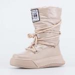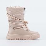 Зимние сапожки-дутики бежевого цвета подходят для девочки-подростка. Верх изготовлен из высокотехнологичного текстиля и защищает ножки от ветра, грязи и брызг. А благодаря многослойной структуре, обра... Показать описаниезующей воздушную прослойку, отлично сохраняет тепло. Дополнительно согревает подкладка – шерстяной мех из натуральной овечьей шерсти. По всему периметру дутики защищены искусственной кожей, предохраняющей от влаги и реагентов. Подошва из термопластичной резины обладает хорошей устойчивостью на зимних дорожках и сохраняет гибкость даже при сильных морозах. Дутики декорированы нашивкой и массивным шнурком, огибающим сапожок в несколько обхватов. Модель анатомически-правильная: выполнена с учетом особенностей подростковой стопы.