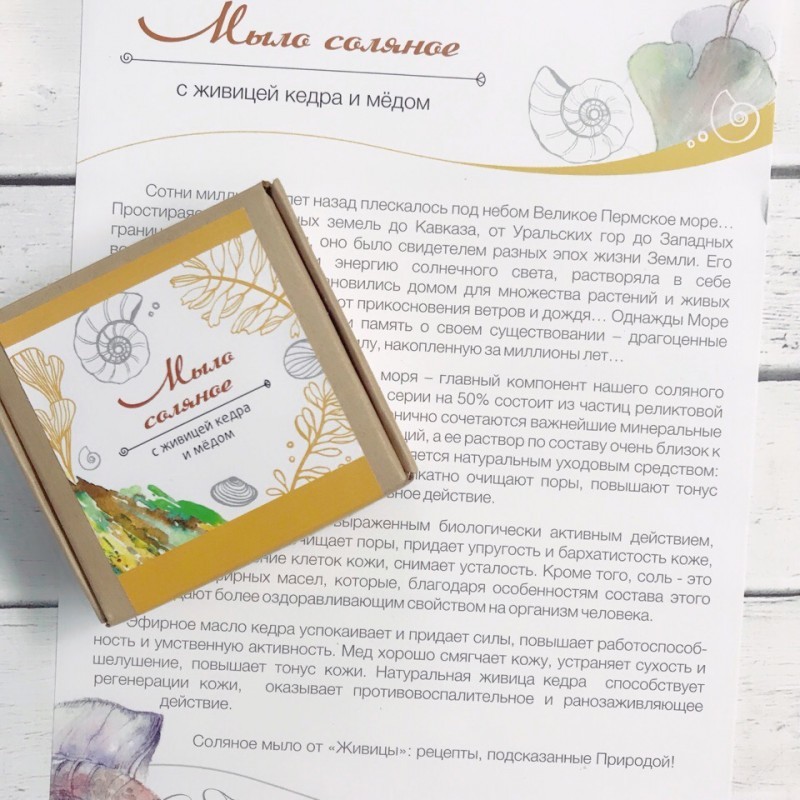 Соляное мыло обладает выраженным биологически активным действием, дезинфицирует, активно очищает поры, придает упругость и бархатистость коже, стимулирует обновление клеток кожи, снимает усталость. Кр... Показать описаниеоме того, соль - это «проводник» эфирных масел, которые, благодаря особенностям состава этого мыла обладают более оздоравливающим свойством на организм человека. Эфирное масло кедра успокаивает и придает силы, повышает работоспособность и умственную активность. Мед хорошо смягчает кожу, устраняет сухость и шелушение, повышает тонус кожи. Натуральная живица кедра способствует регенерации кожи, оказывает противовоспалительное и ранозаживляющее действие. Вес: 80 гр. Состав: натриевые соли жирных кислот масла кокоса, соль древнего Пермского моря, вода, живица кедра, мед, эфирное масло кедра, минеральный пигмент и тепло наших рук! Срок годности: 24 мес. Соляное мыло нельзя хранить в металлической мыльнице.