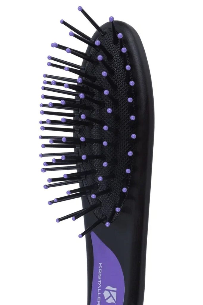 Расческа для волос Kristaller C67-X – надежный инструмент для ухода за волосами. Благодаря термостойким нейлоновым штифтам, расческа бережно распутывает даже самые непослушные волосы, не повреждая их ... Показать описаниеструктуру. Мягкое массирующее действие стимулирует кровообращение в коже головы, что способствует укреплению волосяных луковиц и активному росту волос. Матовое черное покрытие Soft Touch делает щетку приятной на ощупь и предотвращает скольжение в руке, а эргономичная форма обеспечивает комфортное использование. Резиновая подушечка обеспечивает оптимальное давление на кожу головы, делая процесс расчесывания максимально приятным и эффективным. Щетка для волос Kristaller C67-X – это идеальное сочетание функциональности, комфорта и стильного дизайна, которое превратит уход за волосами в настоящее удовольствие.
