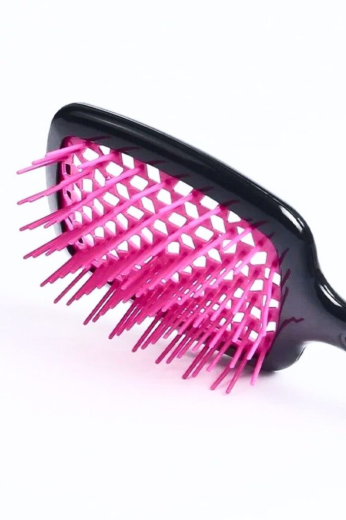 Универсальная массажная расческа для волос с продувной конструкцией — удобный аксессуар для ежедневного ухода за волосами любого типа. Гибкие щетинки аккуратно распутывают даже длинные, кудрявые и нар... Показать описаниеащенные волосы, не повреждая и не вырывая их. Благодаря гибким щетинкам и продувной конструкции типа «вафля», щетка легко проходит по волосам, не травмируя и не путая их. Продувная конструкция позволяет использовать щетку при сушке феном — воздух легко проходит сквозь корпус, ускоряя сушку и укладку. Расческа обеспечивает мягкий массаж кожи головы, улучшая кровообращение и стимулируя рост волос. Антистатический эффект помогает избежать пушистости и электризации. Подходит как для влажных, так и для сухих волос. Благодаря компактному размеру удобно брать с собой в поездки. Изготовлена из прочного пластика. Размер: 20 ? 8,5 ? 3,5 см. Вес — 50 г. Цвет — чёрно-розовый. Подходит для женщин и подростков. Отличный выбор для повседневного использования и в качестве подарка. Подходит для ежедневного использования, массажа кожи головы и быстрой сушки волос. Преимущества: Гибкие пластиковые щетинки Эргономичный корпус — удобно держать в руке Продувная форма — легко мыть и быстро сушить Щетка не рвёт и не электризует волосы Продувная вентилируемая конструкция — идеальна для быстрой сушки феном Лёгкий прочный пластик Антистатический эффект — не пушит волосы Удобна для нанесения масок, масел и других средств ухода Подходит для вьющихся, длинных и наращенных волос Обеспечивает нежный массаж кожи головы, стимулируя рост волос Подходит для мокрых и сухих волос Упрощает ежедневное расчесывание — без боли и спутываний Активирует микроциркуляцию кожи головы Уменьшает ломкость и выпадение волос Делает волосы более гладкими, послушными и блестящими Идеальна в дорогу, в спортзал и на каждый день Используйте на сухих или влажных волосах. Расчёсывайте по направлению роста волос от корней к концам. Для укладки используйте фен — вентилируемые отверстия ускорят сушку. Регулярное использование помогает ухаживать за кожей головы. Результат: Красивые, ухоженные, легко расчёсывающиеся волосы Улучшение состояния кожи головы Меньше выпадения и спутывания Быстрая укладка и экономия времени на сушку