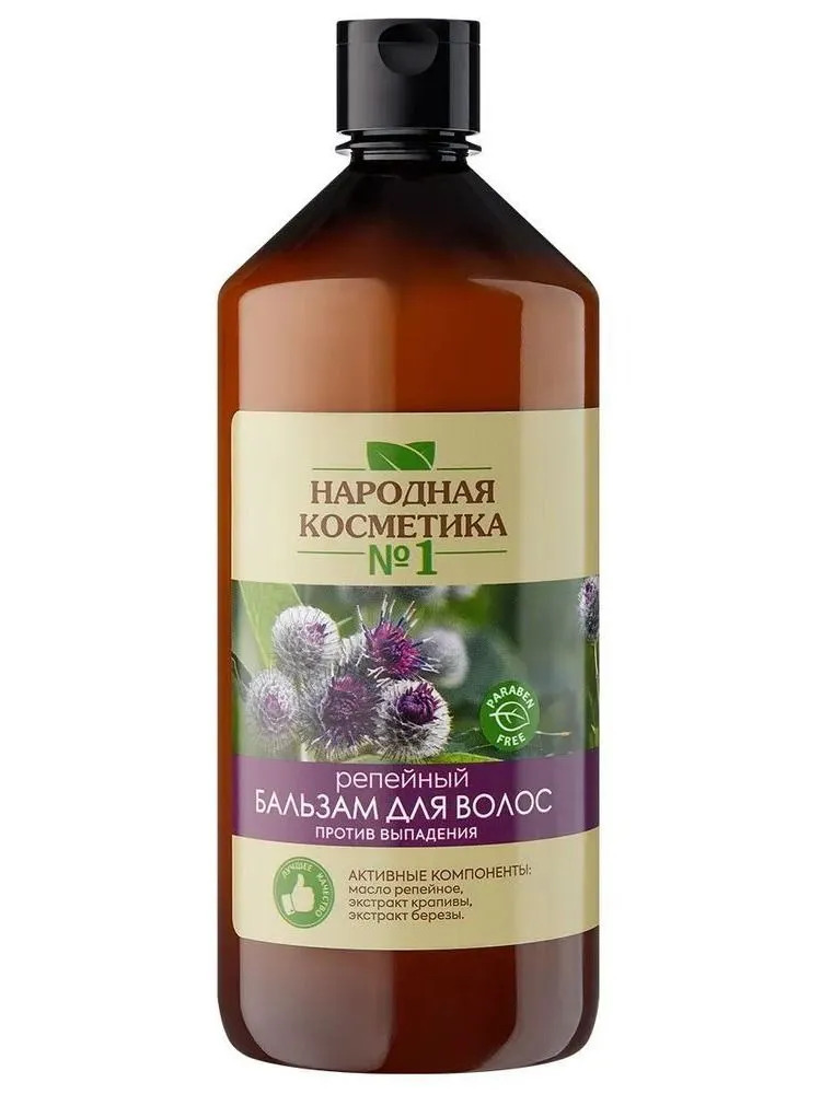Репейный бальзам для волос "Народная косметика №1" против выпадения восстанавливает сухие и поврежденные волосы. Уникальные свойства репейного масла питают волосы изнутри, делая их мягкими, гладкими и... Показать описание шелковистыми. Кондиционер помогает укрепить структуру волос, предотвращая ломкость и секущиеся кончики. Не содержит парабены. Репейное масло – богато витаминами и минералами, способствуют укреплению волос, увлажнению кожи и стимуляции их роста. Экстракт крапивы – кладезь витаминов, минеров и антиоксидантов, которые способствуют укреплению волос, улучшению состояния кожи. Экстракт березы – делает волосы более гладкими и мягкими, придает им естественное сияние.