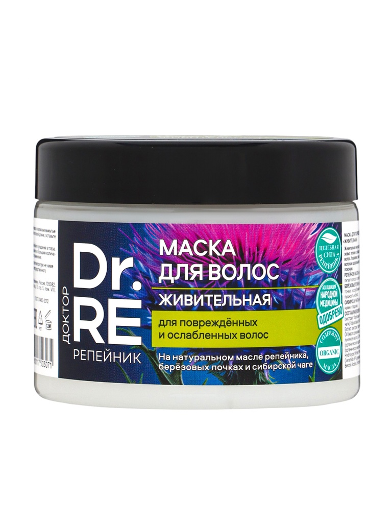Маска для волос «Живительная». Живительная маска для волос на основе репейного масла, березовых почек и сибирской чаги для поврежденных и ослабленных волос. Ухаживает, оказывает укрепляющее действие, ... Показать описаниевозвращает волосам здоровье и природный блеск, придает локонам силу и упругость. Репейное масло успокаивает кожу головы, устраняет шелушение, питает волосы по всей длине.