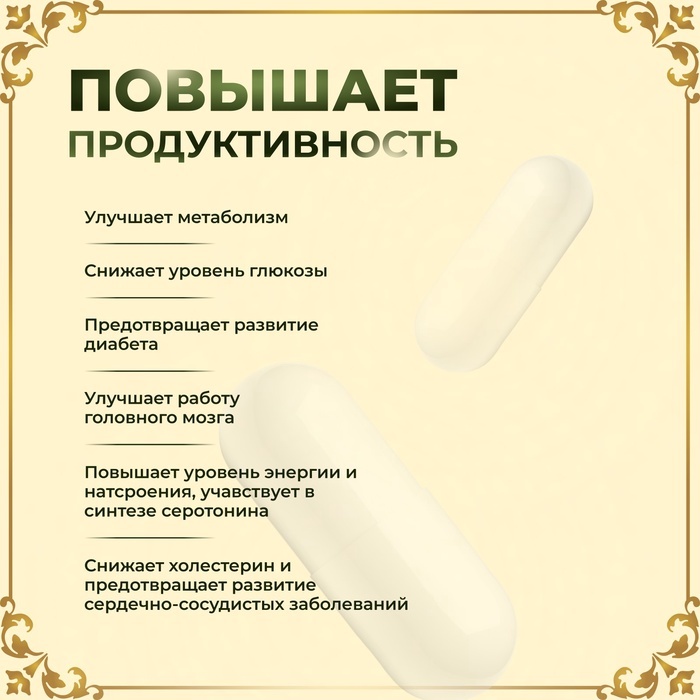 Натуральный растительный комплекс, благодаря уникальному составу целебных растений, холина, аминокислот и лецитина, является инновационным продуктом направленного действия, способствующий восстановлен... Показать описаниеию функций мозга и капиллярного кровообращения, повышению умственной активности, замедлению дегенеративных процессов, укреплению памяти, ясности сознания, усилению интеллекта, активации психической деятельности и увеличе-нию скорости реакции. Активная формула комплекса «Ультра Память» направлена на стимулирование высших психических функций мозга, способ-ствует повышению ментальной концентрации и вниматель-ности, устранению хронической усталости и рассеянного внимания, повышению адаптивности организма к стрессам, увеличению жизненного тонуса, обладает ярко выраженным адаптогенным эффектом. Высокое содержание биологически активных веществ в натуральных растительных концентратах и эффективная формула аминокислот рекомендуются как источник витаминов и минералов при следующих состояниях: при слабоумии, аутизме, рассеянном склерозе, ухудшении памяти, забыв-чивости, рассеянности, при шуме в ушах, головокружении, при агрессии, эмоциональной лабильности, постоянном чувстве страха, тревоге, возрастных нарушениях умственной и мозговой деятельности, бессоннице, навязчивых мыслях, восстановления структуры печени, нормализации уровня холестерина в крови, для восстановления нормального обмена жиров, изменениях, вызванных возрастными невроло-гическими изменениями (болезнями Паркинсона и Альцгей-мера). Состав: холин, лецитин, L-тирозин, ацетил-L-карнитин, инозитол, гинкго билоба сухой экстракт, левзеи сухой экстракт, душицы сухой экстракт, L-глутамин, корня женьшеня сухой экстракт, зверобоя сухой экстракт, синюхи голубой сухой экстракт; вспомогательные компоненты: кремния диоксид, кальция стеарат, мальтодекстрин.