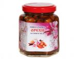 Состав: мёд горный - 44%, грецкий орех - 34%, фруктоза - 18%, вода - 4%. Суточная норма для взрослого человека 4-6 чайных ложек. Это просто вкусное и полезное лакомство, привлекающее внимание не тольк... Показать описаниео детей, но и взрослых. Благодаря включенной в состав фруктозе мед не кристаллизуется (его не пришлось подвергать термической обработке при приготовлении продукта).
