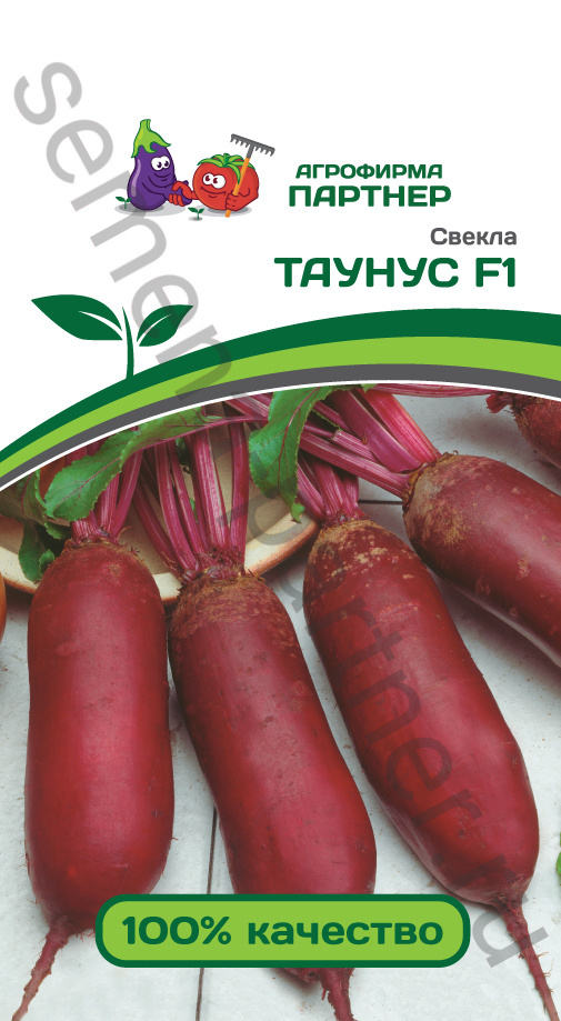 Раннеспелый гибрид. От всходов до технической спелости 95-100 дней. Корнеплоды цилиндрической формы, выровненные по всей длине, на ? длины находятся в почве. Ботва достаточно короткая, корн... Показать описаниеевая шейка небольшая, за счет чего можно осуществлять загущенную посадку. Кольцеватость отсутствует. Гибрид ценится за высокий уровень урожайности, отличные вкусовые и товарные качества. Рекомендуется для приготовления витаминных соков, всех видов кулинарной переработки, консервирования и замораживания. Гибрид не подвержен стрелкованию и церкоспорозу. Таунус F1 обладает превосходной лёжкостью в зимний период и хорошей жаростойкостью.