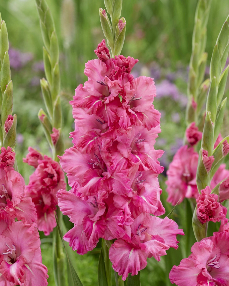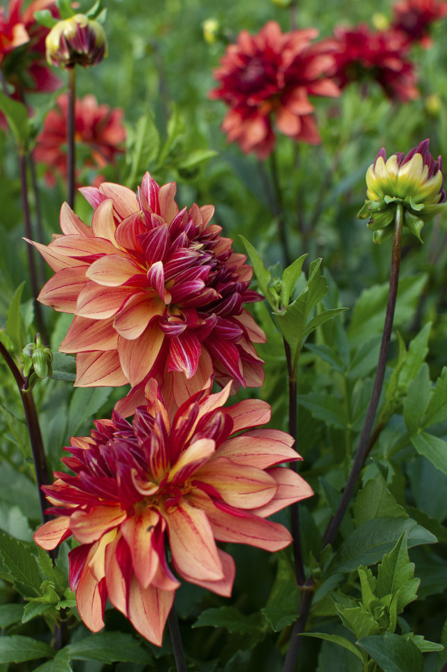 Цветы георгины Эспасио похожи на сладкое облако. Бело-сиреневые цветки прижаты к длинным жестким побегам, благодаря чему этот георгин выглядит на клумбе воздушным и легким. Он красиво скрасит темный ф... Показать описаниеон и придаст саду романтическую атмосферу. Идеально подходит для букетов. Высота: 90-100 см. Диаметр цветка: 15 см. Агротехника: Местоположение: солнечные, защищенные от холодных и сильных ветров места с хорошей циркуляцией воздуха. Нельзя высаживать их на низких и заболоченных участках. Расстояние при посадке зависит от высоты и формы куста того или иного сорта. Участок, выбранный для георгин, должен освещаться днем по крайней мере шесть часов. Почва: богатый перегноем жирный садовый суглинок, рН 6,5-6,7. Хороша для георгинов и удобренная песчаная почва. Участок, предназначенный под георгины, с осени вскапывают, а весной перекапывают. Посадочный материал обычно высаживают в грунт, когда минует угроза возвратных заморозков. В ямы размером 30 х 30 х 30 см, насыпают заранее подготовленный субстрат и комплексное минеральное удобрение. В зависимости от высоты, расстояние между растениями в ряду — 60–90 см. При правильной посадке корневая шейка должна быть на 2-3 см ниже уровня почвы. После посадки растения обильно поливают. Уход за георгинами несложный — обильный полив, мульчирование опилками слоем 6–9 см, подкормки и удаление лишних побегов. Для получения более крупных соцветий обычно удаляют пазушные побеги и выщипывают боковые бутоны. В октябре клубни выкапывают, предварительно обрезав стебли выше корневой шейки на 10–15 см. Клубни очищают от земли и подсушивают. Стебли укорачивают до 3–5 см. Посадочный материал закладывают в ящик с торфом и хранят при температуре от +2 до +6°С.