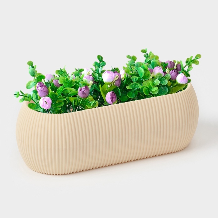 Кашпо Rasfill: элегантность и комфорт для ваших растений. Подарите вашим любимым растениям стильный дом с овальным кашпо Rasfill. Это изящное кашпо с поддоном станет прекрасным дополнением к любому ин... Показать описаниетерьеру, подчеркнет красоту ваших цветов и создаст уютную атмосферу в доме. Преимущества кашпо: * Элегантный дизайн. Овальная форма и нежный бежевый цвет делают его стильным и универсальным, подходящим для любого интерьера, от классики до модерна. * Практичность и удобство. Кашпо оснащено поддоном, который предотвращает перелив воды и защищает поверхности от загрязнений. Поддон в комплекте – это удобно и практично. * Оптимальный объем. Объем кашпо в 1,3 литра подходит для большинства комнатных растений. Ваши цветы будут чувствовать себя комфортно и уютно. * Прочный материал. Кашпо изготовлено из качественного пластика, который отличается прочностью, легкостью и долговечностью. * Универсальность. Кашпо можно использовать для выращивания различных видов растений, цветов и зелени, оно легко впишется на подоконник, стол или полку. Рекомендации: Для оптимального роста растений рекомендуется использовать подходящий грунт. Регулярно проверяйте поддон и удаляйте лишнюю воду.
