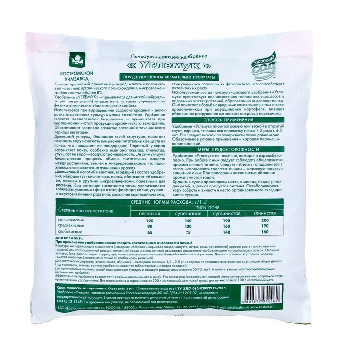 В наше время забота о здоровье растений стала неотъемлемой частью успешного садоводства и огородничества. Одним из ключевых элементов этой заботы является правильное удобрение почвы. И в этом вопросе ... Показать описаниенельзя обойти стороной продукцию от торговой марки Здоровый сад. Одним из самых востребованных продуктов является удобрение почвоулучшающее Углемук. Это уникальное удобрение сочетает в себе функции раскислителя, удобрителя и питателя почв. Оно разработано на основе высококачественных компонентов, которые позволяют добиться максимального эффекта при минимальных затратах. Основным компонентом удобрения Углемук является древесный уголь, который обладает мощными свойствами улучшения почвы. Он способен уменьшить кислотность почвы, обеспечить ее эффективную дренажную функцию, а также улучшить ее питательный состав. В результате использования данного удобрения вы получите более здоровые и крепкие растения, которые будут радовать вас своей красотой и урожайностью. Углемук от торговой марки Здоровый сад поставляется в удобной упаковке весом 2 кг. Это позволяет использовать его на больших площадях, а также делать точечные подкормки отдельных растений. Продукт имеет простую инструкцию по применению, что делает его доступным для использования как для профессиональных садоводов, так и для начинающих огородников. В заключение, хотим подчеркнуть, что использование удобрения Углемук от торговой марки Здоровый сад – это гарантия здоровья и красоты ваших растений. Выбирая этот продукт, вы можете быть уверены в его качестве и эффективности.