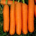 Великолепные корнеплоды для хранения. Высокоурожайный среднеспелый сорт. Сортотип Нантская. Период от всходов до уборки урожая 100-110 дней. Корнеплод цилиндрический, тупоконечный, с отличной внутренн... Показать описаниеей и наружной окраской. Длина 16-18 см. Масса 110-120 г. Сердцевина маленькая, оранжевого цвета. Мякоть нежная, сочная, великолепного вкуса. Рекомендуется для потребления в свежем виде, переработки и хранения.