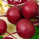 Среднеранний сорт: вегетационный период 70-120 дней. Корнеплоды массой 230-250 г, погружены в почву на 1/2 высоты. Мякоть темно-бордовая, сочная, нежная. Вкусовые качества высокие. Товарность и лежкос... Показать описаниеть отличные. Лучший сорт для всех регионов России.