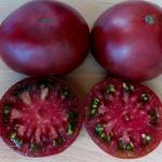 Среднерослый сорт. Высота растения составляет от 1 до 1,5 м. Относится к детерминантным сортам, то есть имеет ограниченный рост. Созревает в средние сроки и требует подвязки к опоре и формировани... Показать описаниея. Он подходит для выращивания как в теплицах, так и в открытом грунте. Рекомендуется формировать куст в 2-3 стебля. Плоды томата имеют пурпурную окраску и могут быть как широко плоскоокруглыми, так и сердцевидными. Средний вес одного плода составляет от 200 до 300 гр. Мякоть томатов очень мягкая и мясистая.