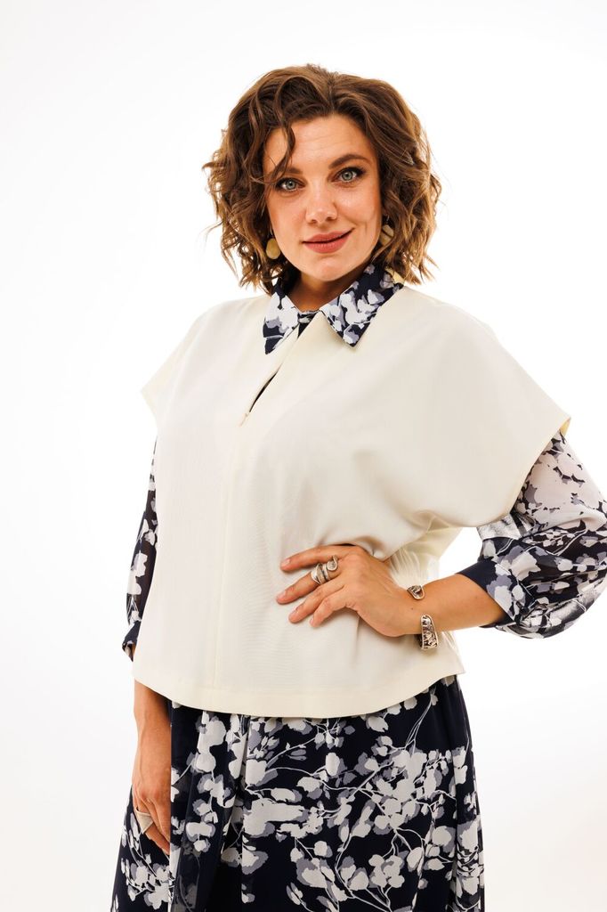 Состав: Вискоза-60%; ПЭ-40%; Элегантная блуза с кружевными вставками по рукавам станет идеальным дополнением вашего гардероба. Изготовленная из мягкого хлопкового полотна она сочетает в себе комфорт и... Показать описание стиль. Прямой силуэт и втачные рукава обеспечивают свободу движений, а рубашечный воротник на стойке придаёт образу утончённость. Функциональная застёжка на пуговицы по всей длине добавляет практичности, а особое внимание привлекают рукава: в их верхней части изящное хлопковое ажурное кружево создает романтичный акцент. Низ рукавов аккуратно присборен на манжетах, которые кокетливо завязываются на бант, добавляя нотку игривости. Эта блуза прекрасно подойдёт как для повседневных, так и для более нарядных случаев, позволяя вам оставаться стильной и уверенной в себе. На модели брюки 1416.1 и юбка 1438.1. Замеры: Размер 50: ОГ-114; ОБ-120; ОП-52; ДИ-69; ДР-50; Размер 52: ОГ-118; ОБ-124; ОП-54; ДИ-70; ДР-51; Размер 54: ОГ-122; ОБ-128; ОП-54; ДИ-70; ДР-51; Размер 56: ОГ-126; ОБ-132; ОП-56; ДИ-71; ДР-52; Размер 58: ОГ-130; ОБ-136; ОП-56; ДИ-72; ДР-52;